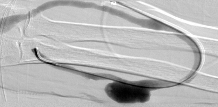 50 year old male with chronic kidney disease on hemodialysis who presents with a pseudoaneurysm of the arterial limb of a RUE arteriovenous dialysis graft.