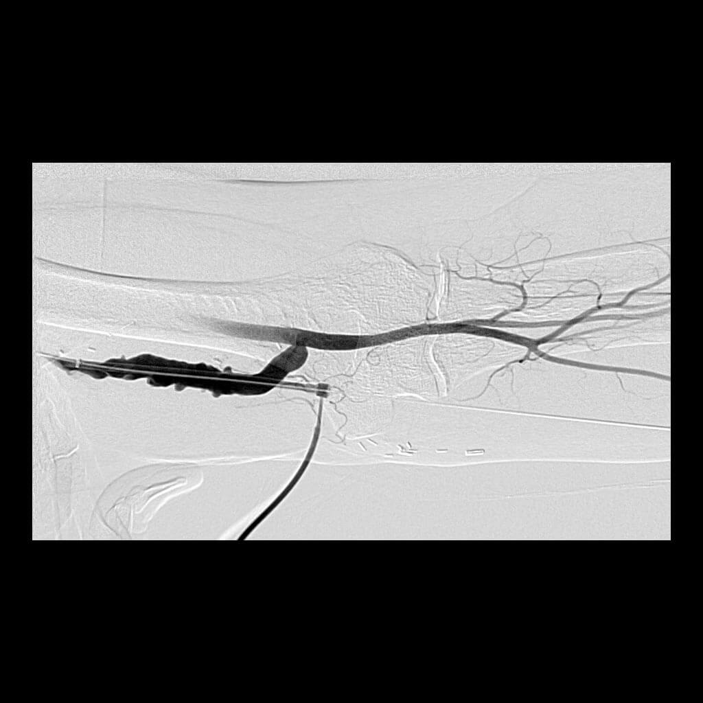 Patients receiving hemodialysis receive this treatment through surgically created dialysis grafts and fistulas. Over time, the function of these conduits may diminish, which can impact the effectiveness of dialysis. IR regularly performs procedures to preserve the patency and functionality of AV dialysis grafts and fistulas.